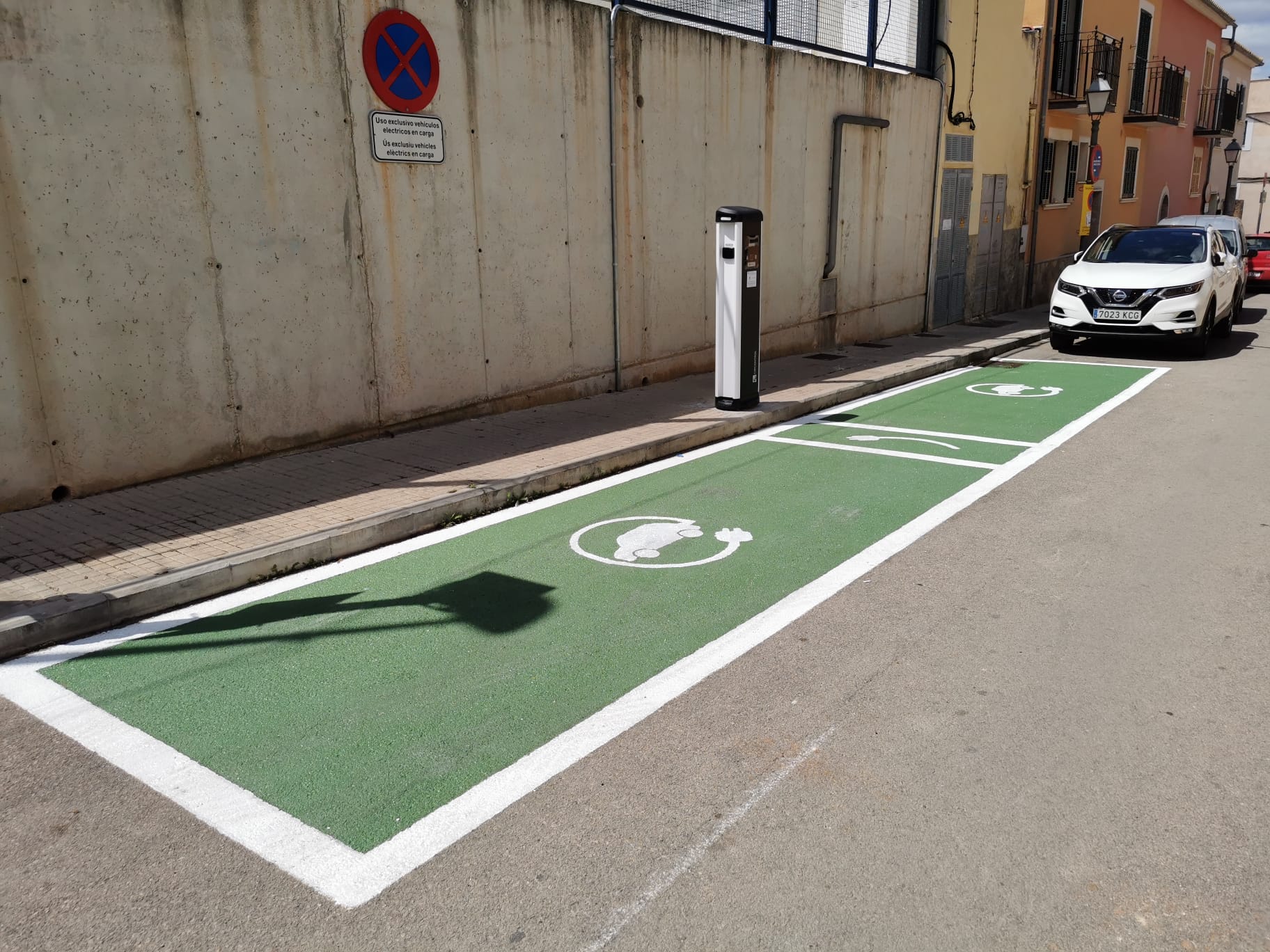 La substitució del carregador simple per un amb capacitat per a dos vehicles elèctrics, s’han duit a terme des de l’empresa CAITBA que ha estat l'adjudicatària de les obres. El punt de recàrrega ja es troba actiu i en línia a la xarxa del MELIB (Mobilitat Elèctrica a les Illes Balears).