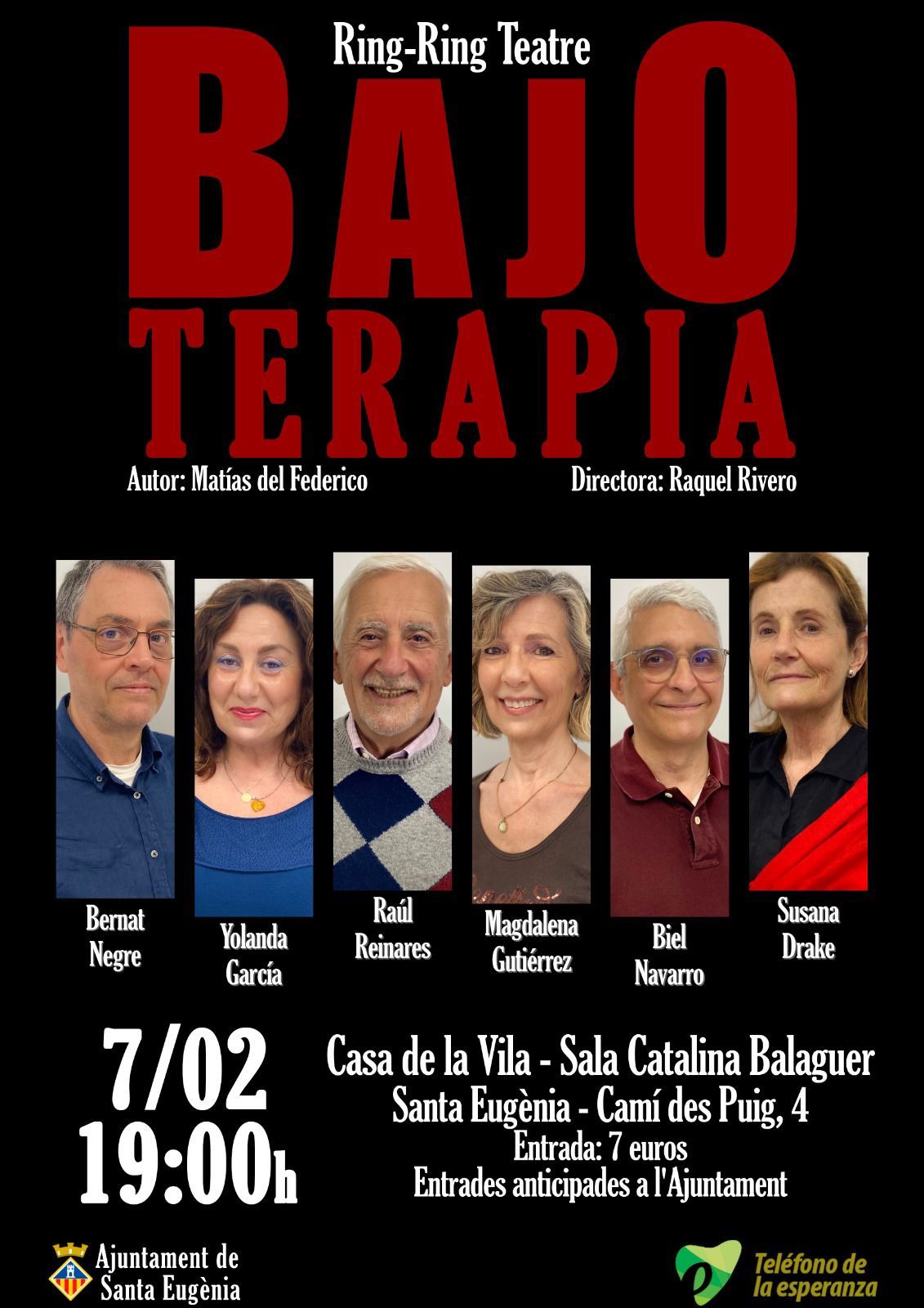 Ring-Ring Teatre ens convida a gaudir de l'obra "Bajo Terapia", on podrem reflexionar sobre la Salut Mental amb un toc d'humor.