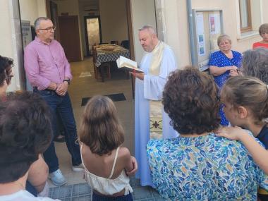 En Paco, el nostre rector, va venir a beneir el local i tots els que hi érem. Gràcies Paco Carmona per cuidar de les nostres ànimes.