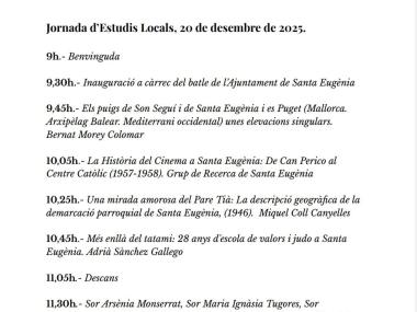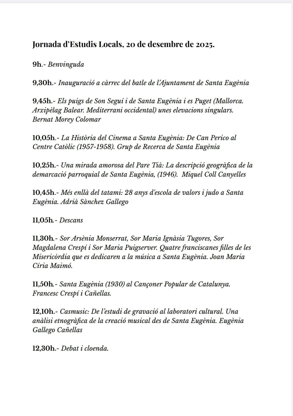 El proper dissabte 20 de desembre, La Casa de la Vila acollirà la Jornada d’Estudis Locals, dedicada enguany a Santa Eugènia.