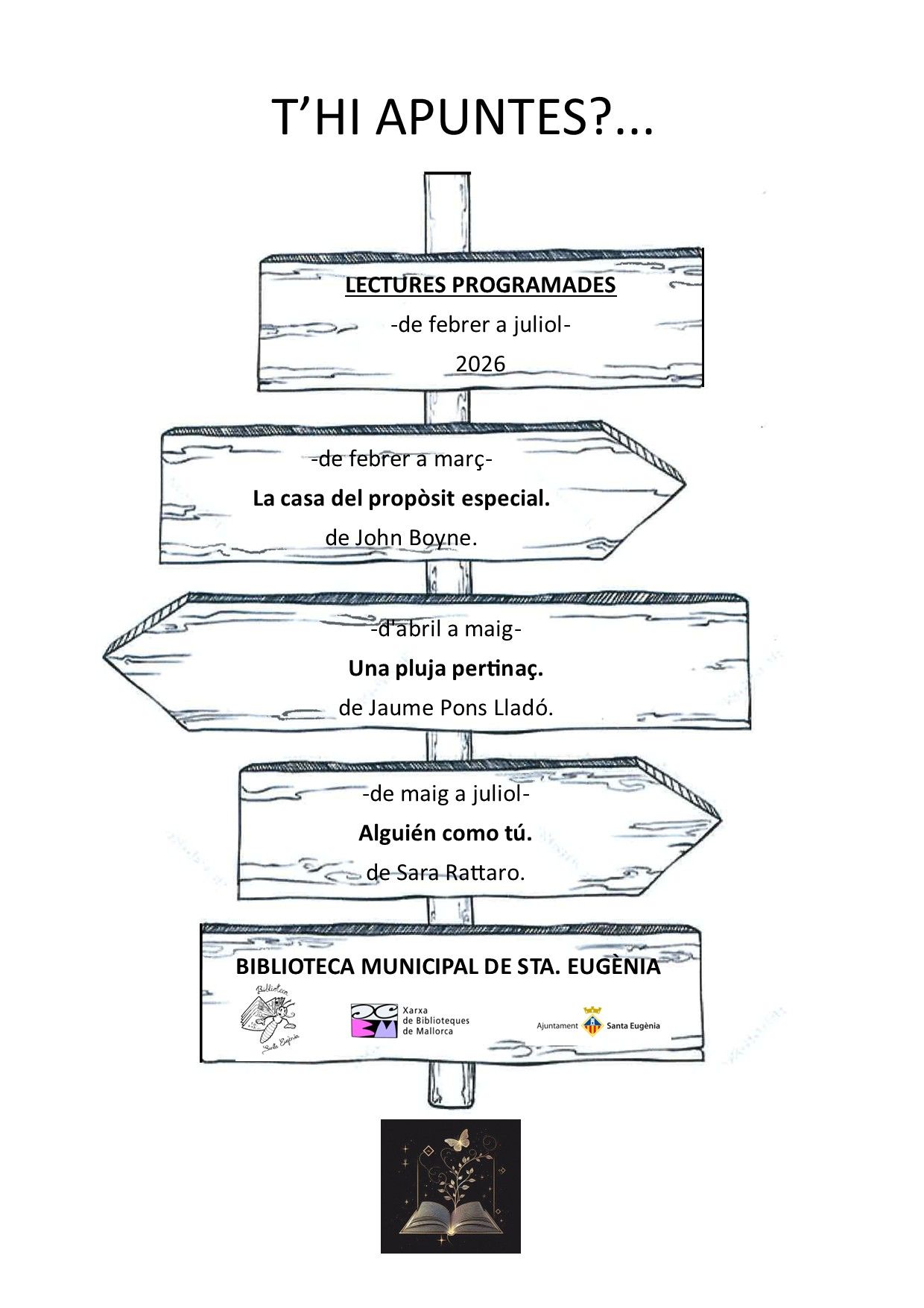 Ses lectures se programaran d'octubre a juny, però ara per començar, de febrer a juliol (adjunt sa programació).